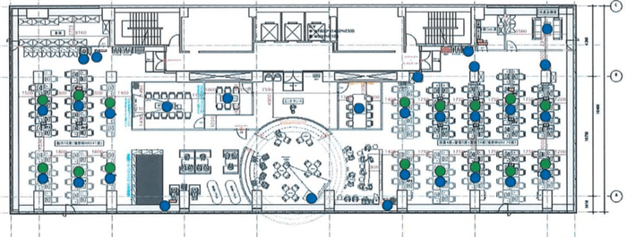 例えば左側をコーポレート部、右側を営業部隊など、部署や業種ごとに区画を分けてレイアウトしやすいかなと思います。