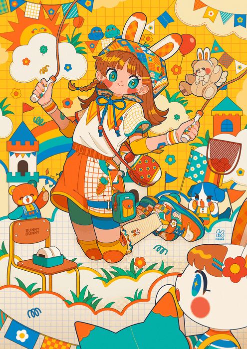 Anicoremix Galleryでは、12月9日より12月20日まで、イラストレーターのitousaの個展「Hippity Hoppity」を開催いたします。本展は、青い空、白い雲、新緑の原っぱをぴょんととび跳ねたくなるようなわくわくをたくさん詰め込んだitousaの初個展です。チャイルドライクでカラフルな世界と、かわいらしいキャラクターたちを覗きにきてください。描き下ろし作品,新作グッズも多数ご用意しました。