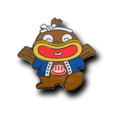 2008年のコンテストで誕生したマスコットの「クエピィ」は、少し前まで「幻の魚」だった「クエ」がモデル。ピンズファクトリーに託された作品は、観光のPRに使用される「“クエピィ”ピンバッチ」でした。温泉マークを胸に付けたハッピ姿のクエピィが、特色を含むソフトエナメルで仕上げられた完成品は、銅合金の優れた品質や存在感満点の29mm仕様で視線を独占。白浜町の広報担当となったキャラクターアイテムは、その人気で商工会の職員にも負けない大活躍を見せています。