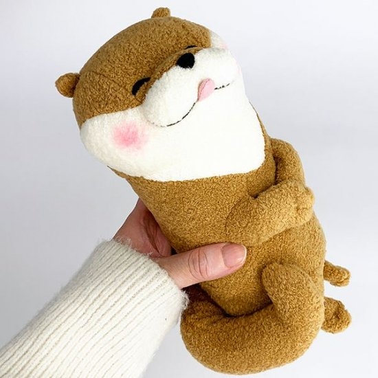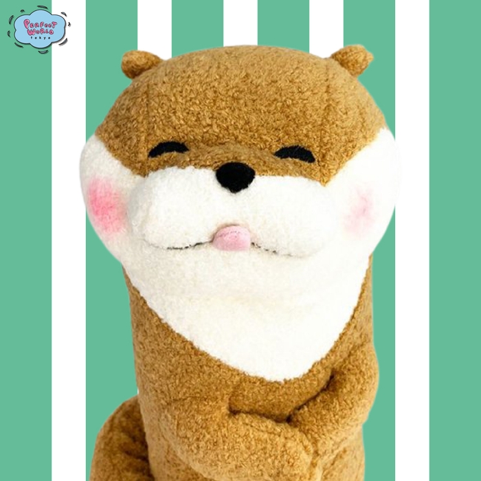 ニッコニコの笑顔につられて笑ってしまいそうな、可愛い嘘のカワウソのぬいぐるみです。