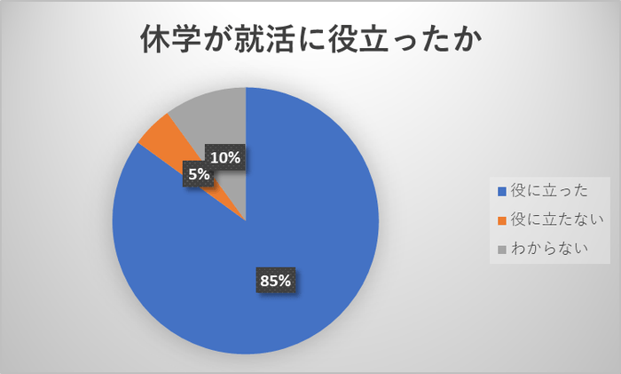 休学について、就活に対する実際の影響を尋ねたところ「役に立った」と答えた人が85%という結果に。