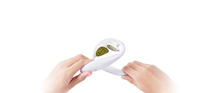 COFO Neck Proの第三の魅力は、その比類のない優れたデザイン性。ペンギンのフラップのような可愛らしいデザイン形状を持ち、シリコン素材による折り畳みが可能。どのような首回りにもフィットします。僅か卵3個分(135g)程度の軽量を実現しながら、超駆動パワフルバッテリーを搭載し、駆動音は0dBの静けさ。自由自在に、どこでもお使い頂けるアイテムです。