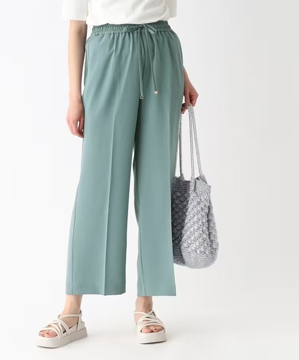 どんなトップスともバランスが取りやすいすっきりしたシルエットのイージーワイドパンツ。腰回りはややゆとりがあるので、骨格問わず着られます。