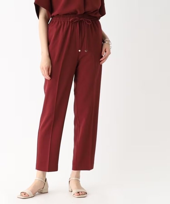 美しさもありながら、ウエストゴムでラクチンさも兼ね備えるイージーテーパードパンツ。センタープレス入りでよりキレイなラインに。シワになりにくく、取り扱いもしやすい1本です。