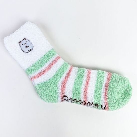 パステル調のグリーンとピンクのボーダーに、しろくまのワンポイントです♡足元が冷える時期にオススメのもこもこ素材の靴下、何足も洗い替えとして揃えておきたいですね。