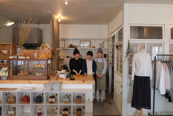 今回は、神辺町で雑貨とおやつのお店「暮らしとおやつ ひらひら」を運営する柳田さん、石元さん、小田原さんの3人に、仲間と手を取り合う暮らしについて伺いました。