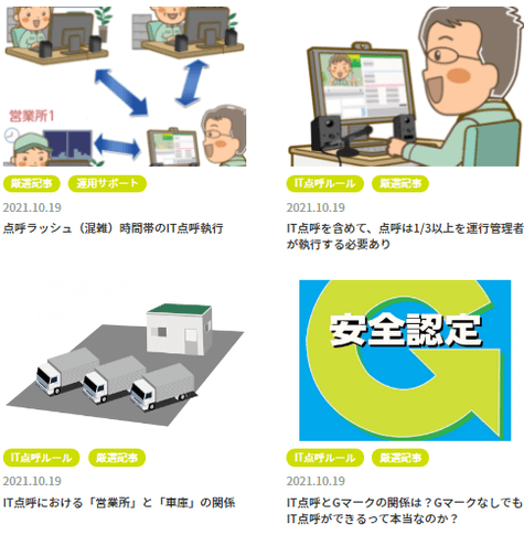 IT点呼は安全規則に合致すべく開発されており、いずれの機能も重要な意義があります。とある機能が自社の課題を一気に解決する可能性を秘めています。ここでは点呼の実務や、点呼システムの各機能の法的な意義や使い方をご紹介してゆきます。