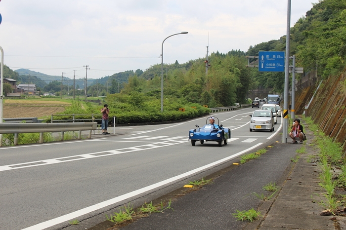 挑戦したのは、福山大学の工学部6人と経済学部の1人の計7人。3年前に同大学の卒業生が製作した1人乗りの小型電気自動車に改良を加えた電気自動車で、無事、走破しました。