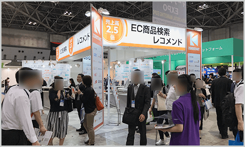 今回ブースでは株式会社コメ兵様の最新導入事例、また多数の業界実績をご紹介したほか、サイト内検索・レコメンドを活用した検索マーケティングの必要性、その効果をご説明致しました。