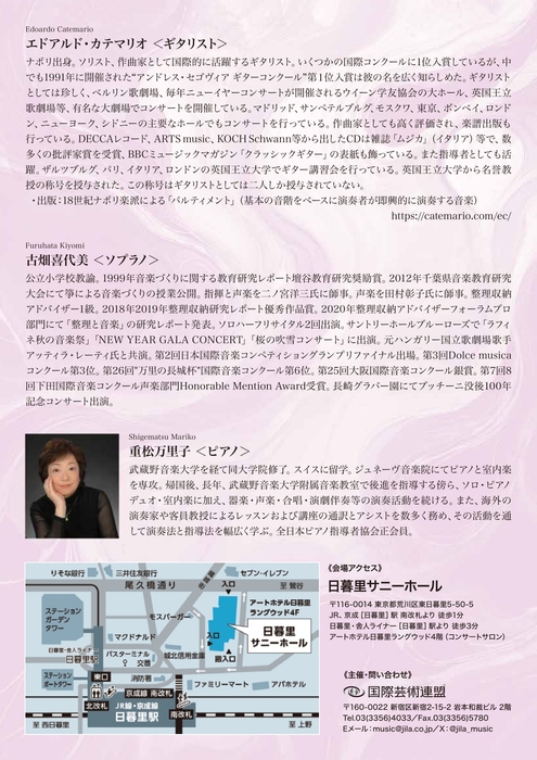 会場:日暮里サニーホール コンサートサロン(東京都荒川区東日暮里5-50-5)