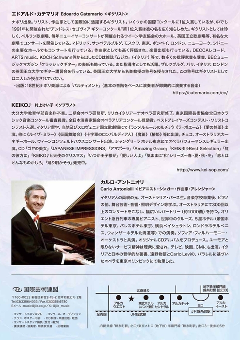 国際芸術連盟(代表:服部和彦)主催、エドアルド・カテマリオの来日公演が、2025年8月~9月の期間、東京都内にて以下の通り5公演開催されます。