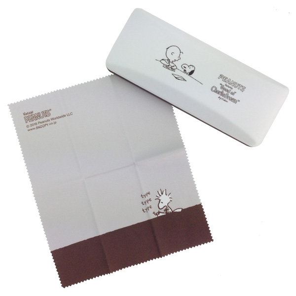ケースにはスヌーピーとチャーリーブラウン。メガネ拭きにはウッドストック♡シンプルなのに、しっかりファンのツボを押さえたデザインです。