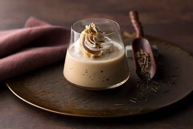 豆乳でマイルドに仕上げたフローズン状のほうじ茶ラテに、チーズクリームをトッピングし、黒蜜や醤油で味を調えた和テイストの新感覚ドリンク。“冬にこたつで食べたくなるアイスクリーム”からヒントを得て考案されたユニークな一品をお楽しみください。