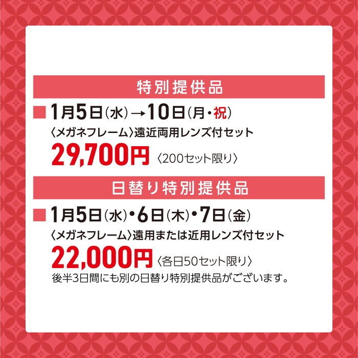 遠用または近用レンズ付セットは各日50セット限りでのご用意です。