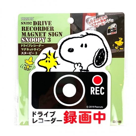 速報 新商品発売開始 ピタっと貼れて愛車のドラレコ録画中をアピール♪マグネットサインはデザインもキュート。スヌーピーのカー用品はいつも可愛いんだよな、、、
