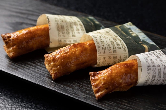 ふぐの身と卵巣の粕漬け、白子を使った濃厚なフィリングに合わせて、肉料理に使われることの多いマデラソースとトリュフで風味と香りを加えています。パイ生地で包んで焼き上げることで、サクサクとしたパイの食感と、白子の柔らかくトロリとした食感の組み合わせを楽しめます。