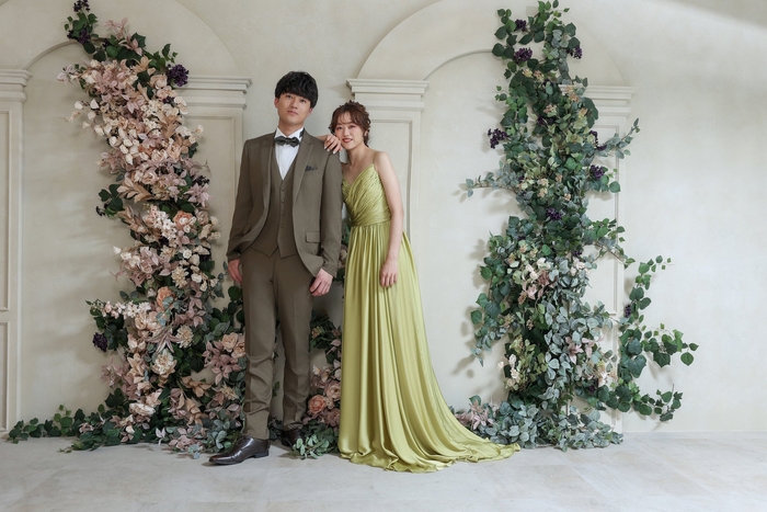 これからの未来を歩むおふたりの幸せを表現するお花が背景を彩ります。