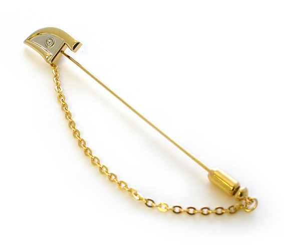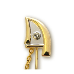 金メッキとサテンニッケルメッキで2色に光る完成品は、中央に入ったラインストーンや立体的に盛り上がった文字部分が、本物のアクセサリーのように高品質な出来栄えとなり、受け取った社員の方々にも大変喜んでいただけたそうで、外部の人たちへの配布もご検討されているとか。金色のイニシャル「D」を身に着けて建築設計のエキスパートとして仕事に臨む皆さんのご活躍を、ピンズファクトリーも心よりお祈り申し上げております。