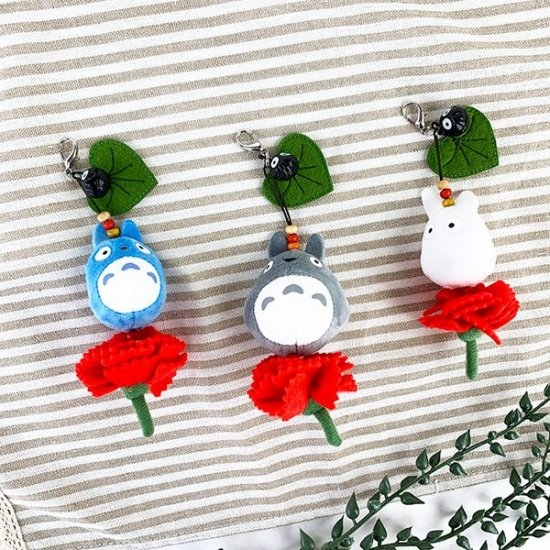 母の日のプレゼントは、もう用意しましたか?ジブリの人気キャラクター・トトロから、母の日にピッタリなアイテムが登場です。トトロや小トトロたちがカーネーションの上に乗っている、ストラップが揃いました。まっくろくろすけのチャームも付いていて、とってもキュートですよ。