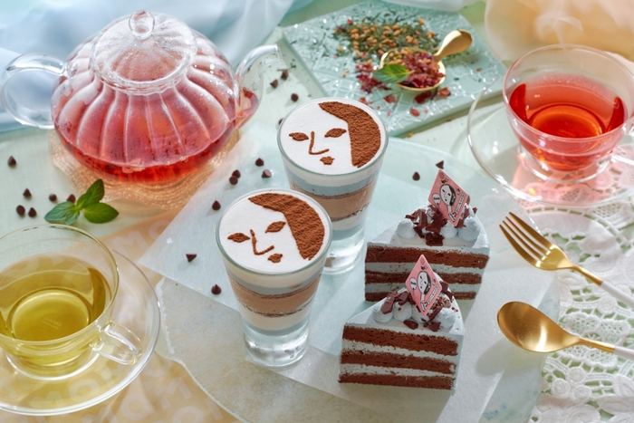京都市内に展開する「よーじやカフェ」のパティシエが考案した、同カフェの夏の人気フレーバー、チョコミントスイーツを提供します。京都の暑い夏でもすっきり食べられるチョコミントスイーツは、よーじやのイラストをワンポイントに、「涼」を感じる見た目に仕上げました。スイーツに合わせオリジナルでブレンドした、ローズヒップティーハマナスの花ブレンドと桑の葉玄米茶のお茶2種を合わせ、思わず写真を撮りたくなるようなテンションが上がる夏らしい色合いが楽しめます。