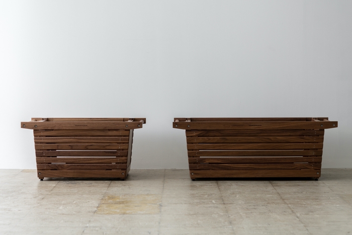 一生使える道具を基本思想に、「いれる、もつ、はこぶ、しまう」というコンテナの基本性能をゼロから見直し、家ではシェルフ(棚)、外では機能性コンテナとして使える、家と外での使いやすさと美しさを追求した木製シェルフコンテナです。