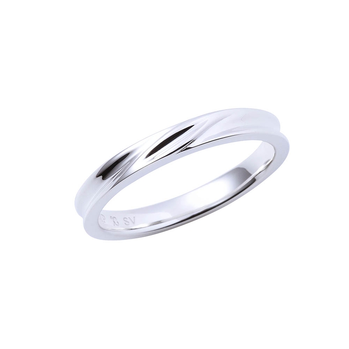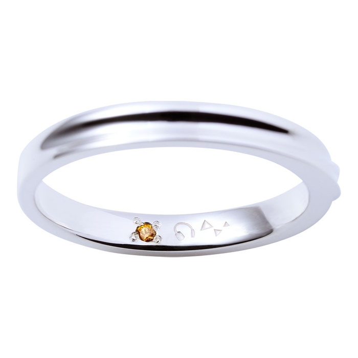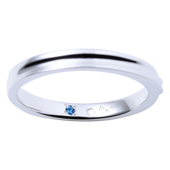 ゆるやかな平打ちタイプのシンプルなデザイン。内側にはイメージカラーストーンをセットし、BL本アイコンを刻印しました。