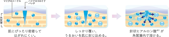 特長①:角質層までしっかり刺さるにこだわった針状ヒアルロン酸※1の設計。