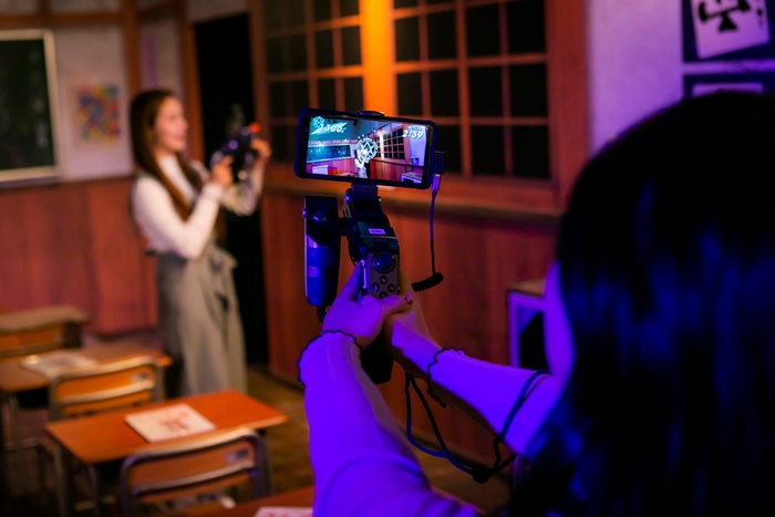 プレイヤーは、「スマホ装着型」の銃型コントローラーを手に、教室や理科室など小学校の校内を再現した施設の中を自由に探索。銃型コントローラーにセットされたスマホの画面に出現するオバケを撃って退治していきます。現実空間に非現実のオバケが現れるという不思議な感覚と、360°空間を活かしたスリリングなシューティングゲームを楽しめる体験型コンテンツとなっています。