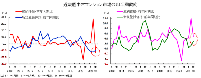 近畿圏不動産流通機構、2021年7~9月期の 中古マンション市場の動向を発表 中古住宅取引は減少、物件価格の上昇は続く