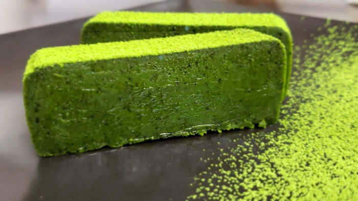 販売するテリーヌ一つ分に、お点前用の抹茶4杯分の抹茶を贅沢に使用しています。抹茶自体も1kg10万円の高級抹茶「出雲抹茶-premium-」を使用することで濃厚な風味があり、抹茶好きの方にもご納得いただけると思っております。