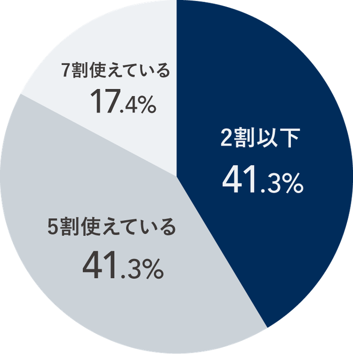 「重要業務にどれだけ時間を使えているか」について調査したところ、41.3%が重要業務への時間配分が2割以下と回答し、戦略策定や顧客のインサイト分析に十分な時間が割けていないことがわかります。