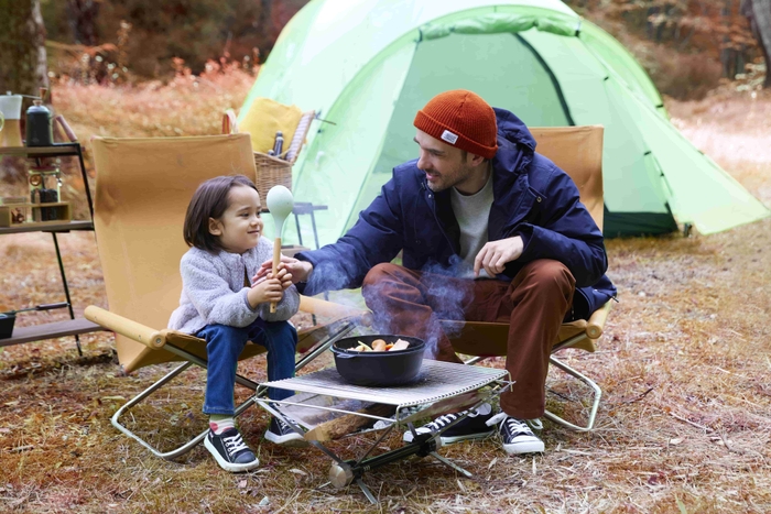 キャンプサイトは、1秒アクセスが可能な客室のガーデンに用意します。そのため、いつでも好きなタイミングでキャンプを楽しむことができます。客室からキャンプサイトを確認できるので、子供が外でキャンプをしている間、大人は客室の中で子供の成長を見守りながら、ゆっくりと過ごすことが可能。焚火で焼いて楽しむベジタブルマシュマロに加えて、大人には燻製のおつまみセットを用意します。ホットワインやミルクなどのドリンクもあるため、外でもほっこりとあたたまりながらキャンプ体験を満喫。日中は家族みんなで遊び、子供が休んだ後は、そっと外に出て大人だけの時間を楽しむなど、子供も大人も自由な楽しみ方ができます。