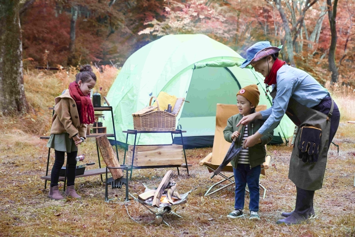 当リゾートの42,000坪のフィールドを使って、アグリキャンプマスターとともにキャンプに必要な3つのスキルを習得します。ミッション1は「テント設営」。客室から徒歩1秒のキャンプサイトにテントを設営するため、アグリキャンプマスターから子供へレクチャー中、大人は客室内で様子を見ながらゆっくりとくつろげます。ミッション2は、「火おこし」。冬は乾燥している資材を集める絶好のシーズンであるため、アグリキャンプマスターと一緒に森の中に出かけて、火が付きやすい素材や焚火に適した木材を集めたあと、火おこしの練習をします。ミッション3は、「アウトドアクッキング」。朝食は、前日に習得した火おこしのスキルをつかい、冬野菜がたっぷり入ったスープを温めて楽しみます。
