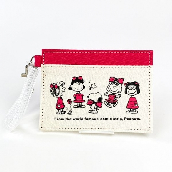 スヌーピー&ガールズのポーチは、リボンでおめかしするスヌーピーと女の子たちがキュート!リボンの付け方もそれぞれ似合っていてかわいいですね♡