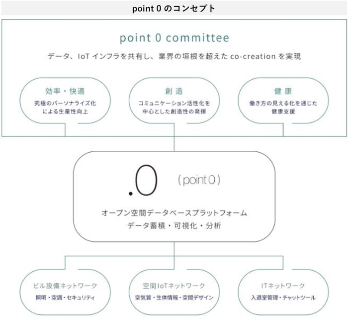 point 0は、異業種コラボレーションにより「働く空間の価値」を創出するオープン・イノベーションの加速化を目的に2019年7月にスタートしました。「未来のオフィス空間」を実現していくためのコワーキングスペースであり、かつ製品やサービスを働く人たちに試してもらう実証実験の空間として『point 0 marunouchi』を運営しています。2022年3月現在、プロジェクトに参画する企業は20社に上り、協創/共創の幅が広がっています。