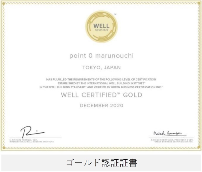 また、2020年12月には、日本のコワーキングオフィスとして初めて「WELL v2」ゴールド認証を取得しました。