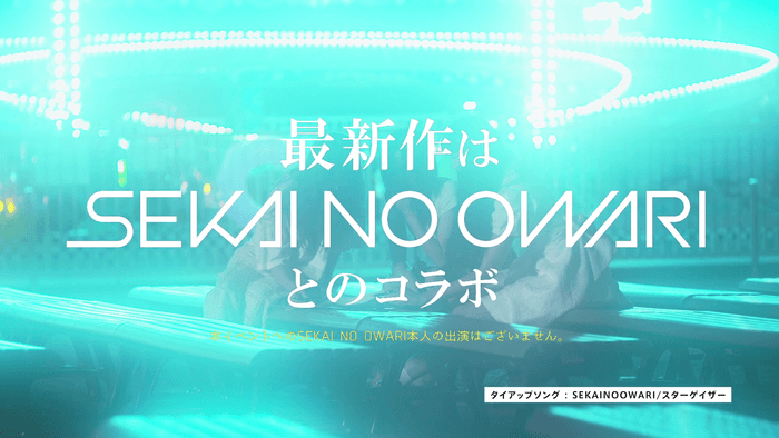 リアル脱出ゲームとSEKAI NO OWARIの初コラボとなる今回のイベントの舞台は、全国の夜の遊園地。閉園後の遊園地を貸し切りで遊ぶことができる本イベントの中でSEKAI NO OWARIの世界観を再現し、謎解きファンだけでなくSEKAI NO OWARIファンにもお楽しみいただける内容になっております。今回制作したCMは、実際に夜の遊園地で撮影を行い、曲はSEKAI NO OWARIが書き下ろした完全オリジナルタイアップソング『スターゲイザー』を起用しています。