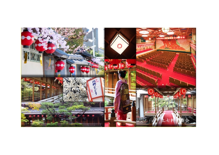 数々のドラマや映画のロケ地、CM撮影に使用され、日本庭園を備えた純和風の劇場、上七軒歌舞練場も楽しみのひとつ。