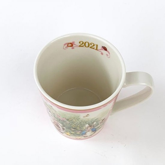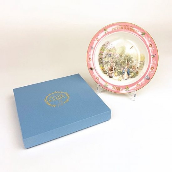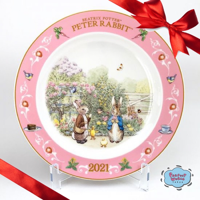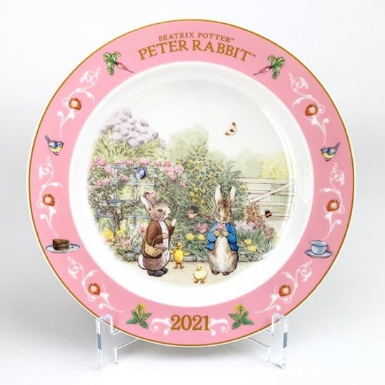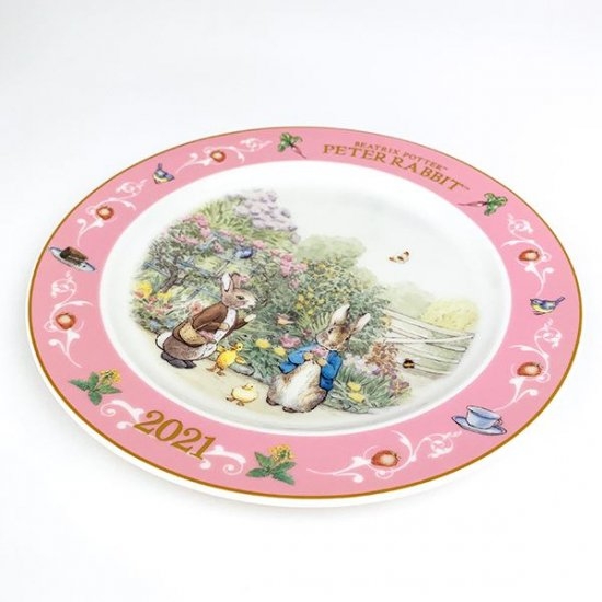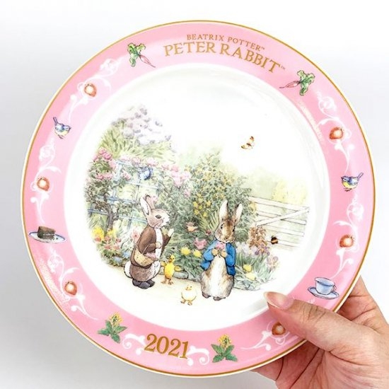 まさにティータイムのための様なイヤーズプレートです。ナチュラルなガーデンの背景にピーターラビットたちが佇んでいるデザイン。縁取りのピンクも上品できれいですよね。そこに描かれたティーカップやお花、鳥など、すべてが自然の物をモチーフにしていて、ピーターラビットの世界観そのものです。