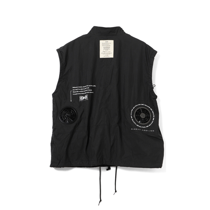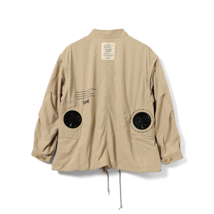 こちらのアイテムは、モッズジャケットをベースに裾に向かって広がるAラインのシルエットで、性別を問わず着用しやすく、外気を取り込んだ際に膨らむシルエットの変化も楽しめるデザイン。ドロップショルダーになる大きめのサイジングや、ファンの存在感を際立たせるミルスペック風のプリントなど、ファッションの要素を盛り込みながら、ベストとしても着用可能な袖のデタッチャブル仕様や、リップストップ生地を採用するなど、「ファッション×機能」を実現いたしました。