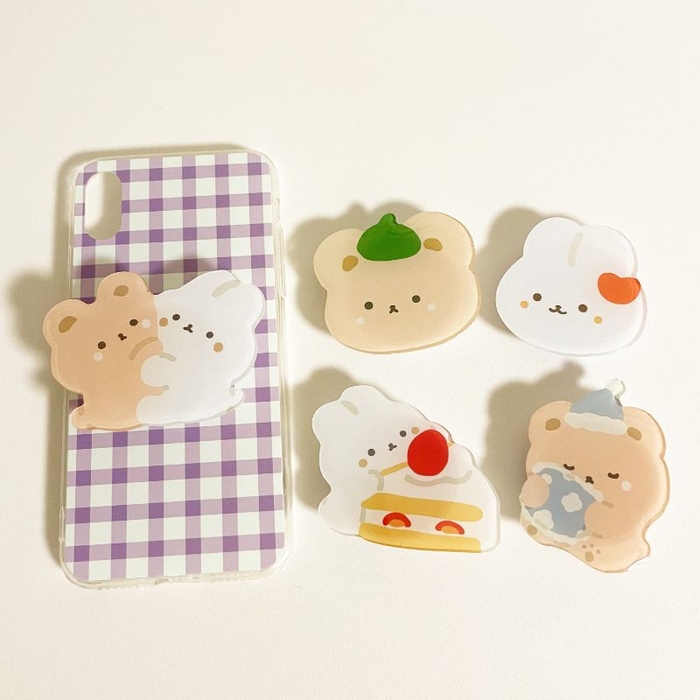 スタジオハヌル目玉商品のTOKTOK。ぷっくりつるつるとした表面が可愛いグリップトックです。裏側がシールになっており、スマホの背面に貼り付けて使用いただけます。スマホ落下防止や撮影時の手ブレ防止にも役立つほか、映像や画面を見る際に便利なスマホスタンドとしても活用できます◎発売したての新柄もお楽しみください♫