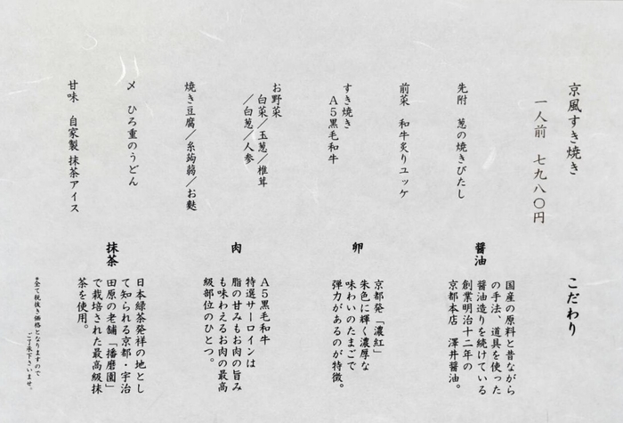 黒毛和牛にブランド卵…すべて京都の一流にこだわりコース1本で勝負する京風すき焼き