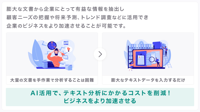 AI活用で、テキスト分析にかかるコストを削減!大量の文書から有益な情報を抽出する「AIテキストマイニング」機能をリリース