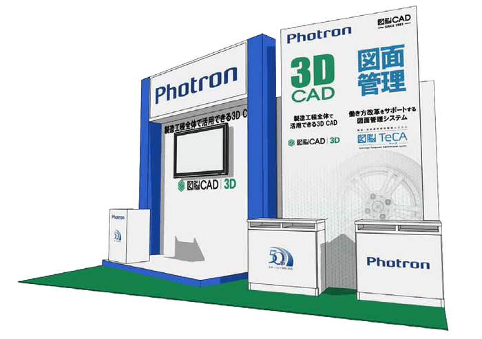 フォトロンブースではCATIAデータをそのまま編集できる3D CAD新製品『図脳CAD3D』や製造業向け図面管理システム『図脳TeCA(ティーカ)』を出展。