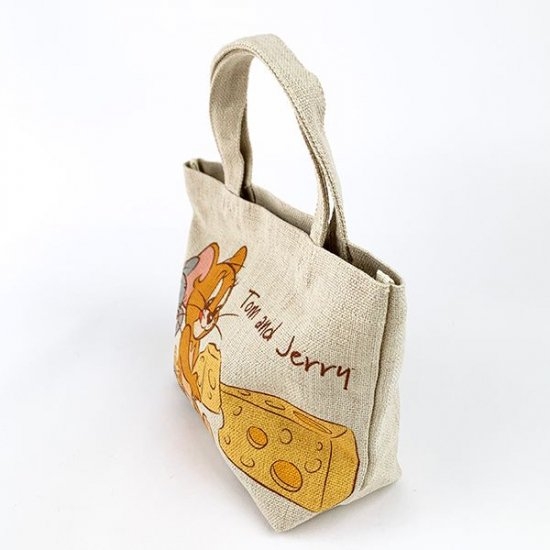 ジェリーとタフィーがチーズを前にご機嫌な表情な、ランチトートバッグです。