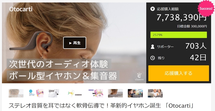 軟骨伝導イヤホン「cheero Otocarti(オトカルティ)」 Makuakeにて目標金額2500%達成!!