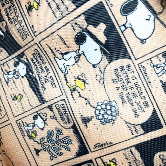 最大のチャームポイントはこの裏地。ファッションを選ばないシンプルさでどんどん使えるのに、開けた時にはスヌ愛が爆発する、大事にできそうなアイテムです。コミック柄とのコンビネーションが素敵なのです。