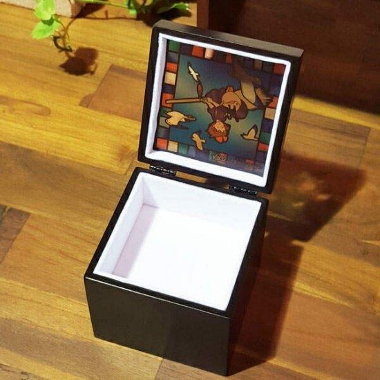 フタ部分が、ステンドグラスのような透け感があって幻想的。ボックスタイプなので小物入れとしてもお使いいただけます。宝物をこの素敵なオルゴールの中に収納しても良いですよね。