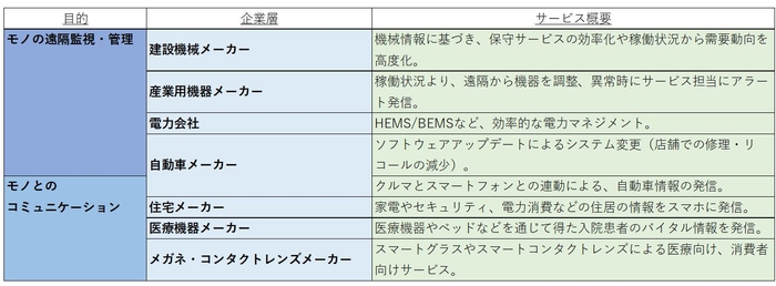 IoTの台頭は、製品に機能が追加されて付加価値が高まると同時に、周辺サービスを手厚くすることができる。また、企業は、モノが発信するリアルタイム情報を活用することか可能になり、迅速で精度の高い意思決定に活用できる新たな情報インプットを獲得できることになる。