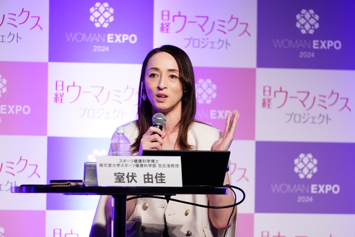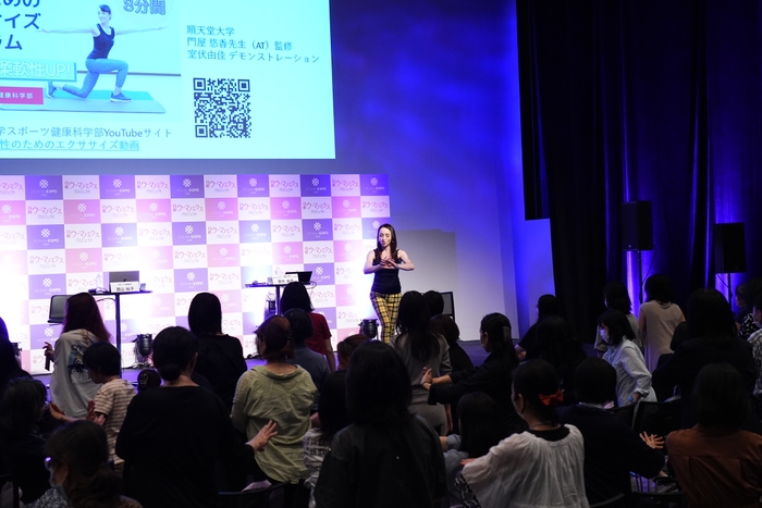 「室伏由佳さんに教わる 自分らしくいられるカラダのつくり方~well-body(ウェルボディ)に近づく3つのポイント~」には、順天堂大学スポーツ健康科学部の室伏由佳先任准教授が登壇。“痩せていれば健康”という間違った認識により、痩せている女性が糖尿病になってしまうリスクを指摘。自身も難しいという“運動習慣”をいかに普段の生活に取り入れるかを具体例と共に紹介するとともに、すきま時間にできる簡単なエクササイズを参加者と一緒に実践しました。